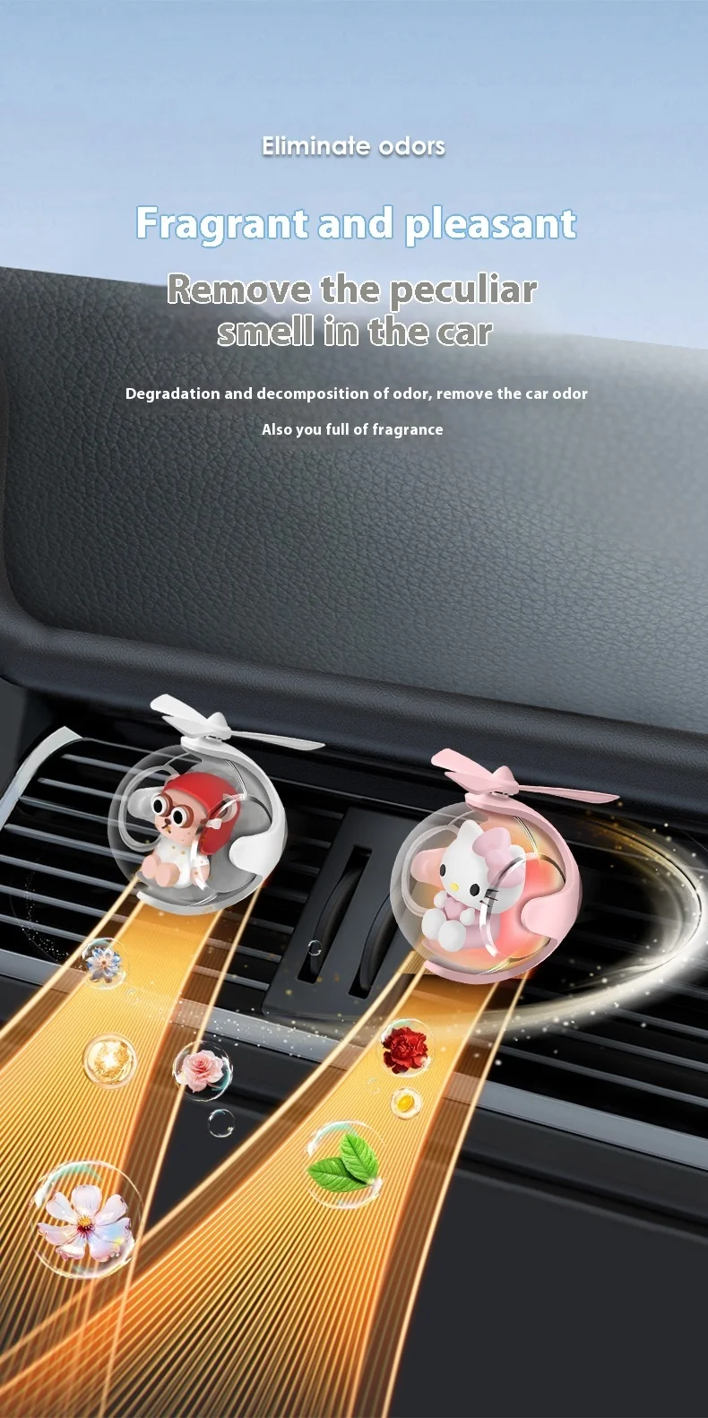 This cute clip is not just a stylish decoration but also eliminates unpleasant odors from your car.